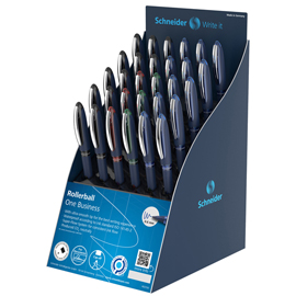 Espositore da banco con 96 penne a sfera in 4 colori assortiti. Dotate di fusto in gomma a tutta lunghezza che garantisce comfort in ogni posizione. Punta 1,0mm.