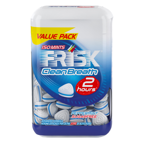 Astuccio di 150 microcompresse con zinco, con edulcoranti. Senza zucchero. Senza glutine. Azione efficace per oltre 2 ore di alito puro.