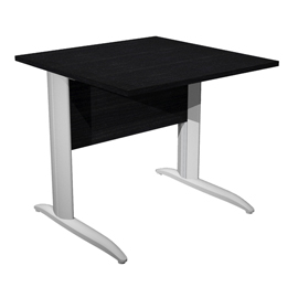 Scrivanie con dimensioni conformi alle normative sulla sicurezza dei posti di lavoro in ufficio. Bordatura dei piani in ABS 2mm antishock ed assenza di spigoli vivi. Le scrivanie sono disponibili nella versione con fianchi pannello in melaminico (sp. 22 mm) o con fianchi in metallo ad L verniciati effetto cromo o grigio alluminio RAL 9006, completi di piedini regolabili in altezza e canalina passacavi ispezionabile. Dimensioni: L80 x P80 x H72cm