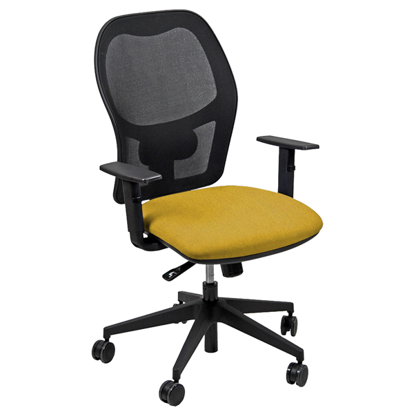 Seduta operativa girevole con elevazione a gas, meccanismo syncro, 4 blocchi anti shock e meccanismo a contatto permanente. Schienale con supporto lombare regolabile. Completa di braccioli regolabili. Rivestimento in tessuto “ECO-Eco” 100% polipropilene. Alt.tot: 102-113cm; Prof.tot: 68cm; Alt.schienale: 60cm; Largh.schienale: 48cm; Largh.sedile: 48cm; Prof.sedile: 46cm; Alt.sedile: 42-54cm.