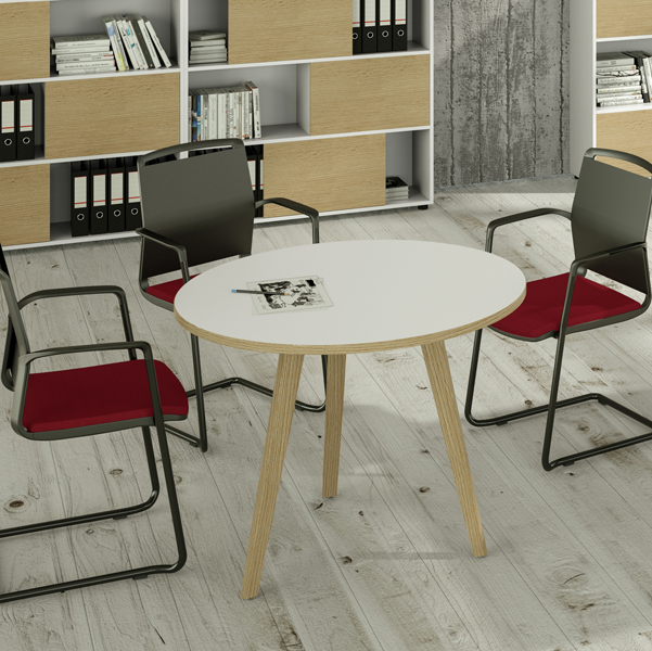 Tavoli rotondi di dimensioni contenute ideali per garantire un pratico e veloce appoggio per riunioni.